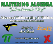 This brief demo is one of the actual lessons being taught from the advanced mathematics textbook by an experienced Saxon high school mathematics teacher in a classroom environment. Using this series, students have the added ability of being able to pause or rewind the video to review specific concepts or steps used in a particular concept or individual problem when necessary. This course covers the last half of the advanced mathematics textbook as well as the first twenty-five lessons of the second edition calculus textbook (through derivatives).